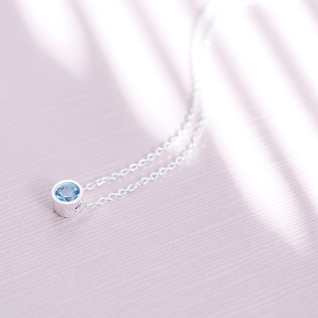 실버 925 3월 탄생석 원형 목걸이 베리타 아쿠아 라운드 N