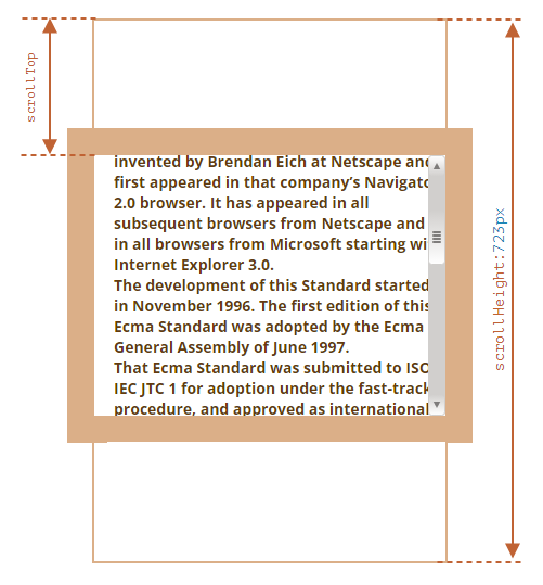 2) scrollTop, scrollLeft: 스크롤이 차지하는 영역의 너비와 높이(아래 이미지 참조). 이 속성은 변경 가능하며 스크롤바 이동을 구현할 수 있습니다.