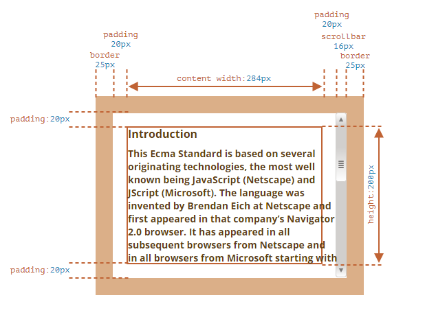 4) scrollWidth, scrollHeight: clientWidth 및 Height와 유사하지만 숨겨진 영역의 크기를 포함합니다.